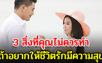 3 สิ่งที่คุณไม่ควรทำ ถ้าอยากให้ชีวิตรักมีความสุข Read Moreเชื่อเถอะว่า เวลาคบใคร เราก็ไม่อยากจะเลิกหรอก เพราะการลาจากมันไม่ใช่เรื่องสนุก ไม่ว่าจะเป็นฝ่ายไหนก็ต้องเจ็บปวดเสมอ