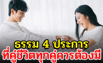 ธรรม 4 ประการ ที่คู่ชีวิตทุกคู่ควรต้องมี Read Moreผู้คนมีเหตุผลในการเข้ามาในชีวิตของเราทั้งนั้น ไม่ว่าจะนำบทเรียนสำคัญ น้ำตา บ า ดแผล หรือพรวิเศษมาให้ อยู่ด้วยกันได้เพียงแค่ 1 ชั่ วโมงหรือตลอดชีวิต