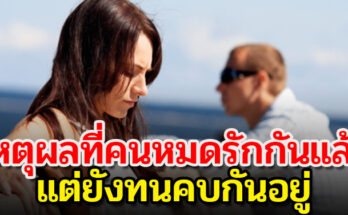 8 สิ่งที่ควรเลิกทำ เพราะชีวิตตัวเองลำบากขึ้นทุกๆวัน Read Moreมีคู่รักหลายคู่ที่ยังคบกันอยู่ทั้งที่ความจริงแล้วพวกเขาหมดรักกันเเล้ว คุณอาจสงสัยว่าคนไม่ได้รักกันจะทนอยู่ด้วยกันไปเพื่ออะไร